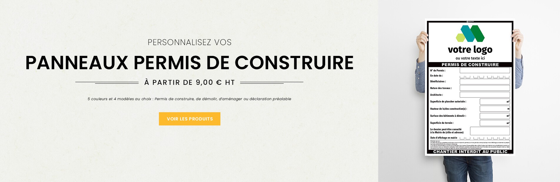 Personnalisez votre panneau Permis de construire en ajoutant votre logo et/ou votre texte ! Ce panneau permis de construire personnalisable est conçu en Akylux de 3mm d'épaisseur et de dimension 800x1200mm. Un panneau permis de construire sert à communiquer sur les détails concernant un chantier de construction en cours. L'AkyLux® est un polypropylène alvéolaire très apprécié pour sa légèreté et sa forte résistance aux conditions extérieures.